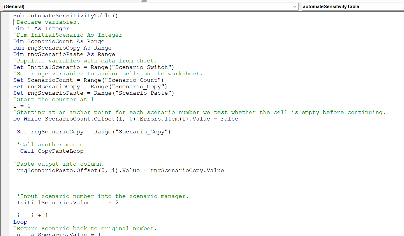 The conventional method is to use a simple copy and paste macro with a loop. It’s only two lines of code, but the issue is that the number of these macros grows as your model gets more complex.